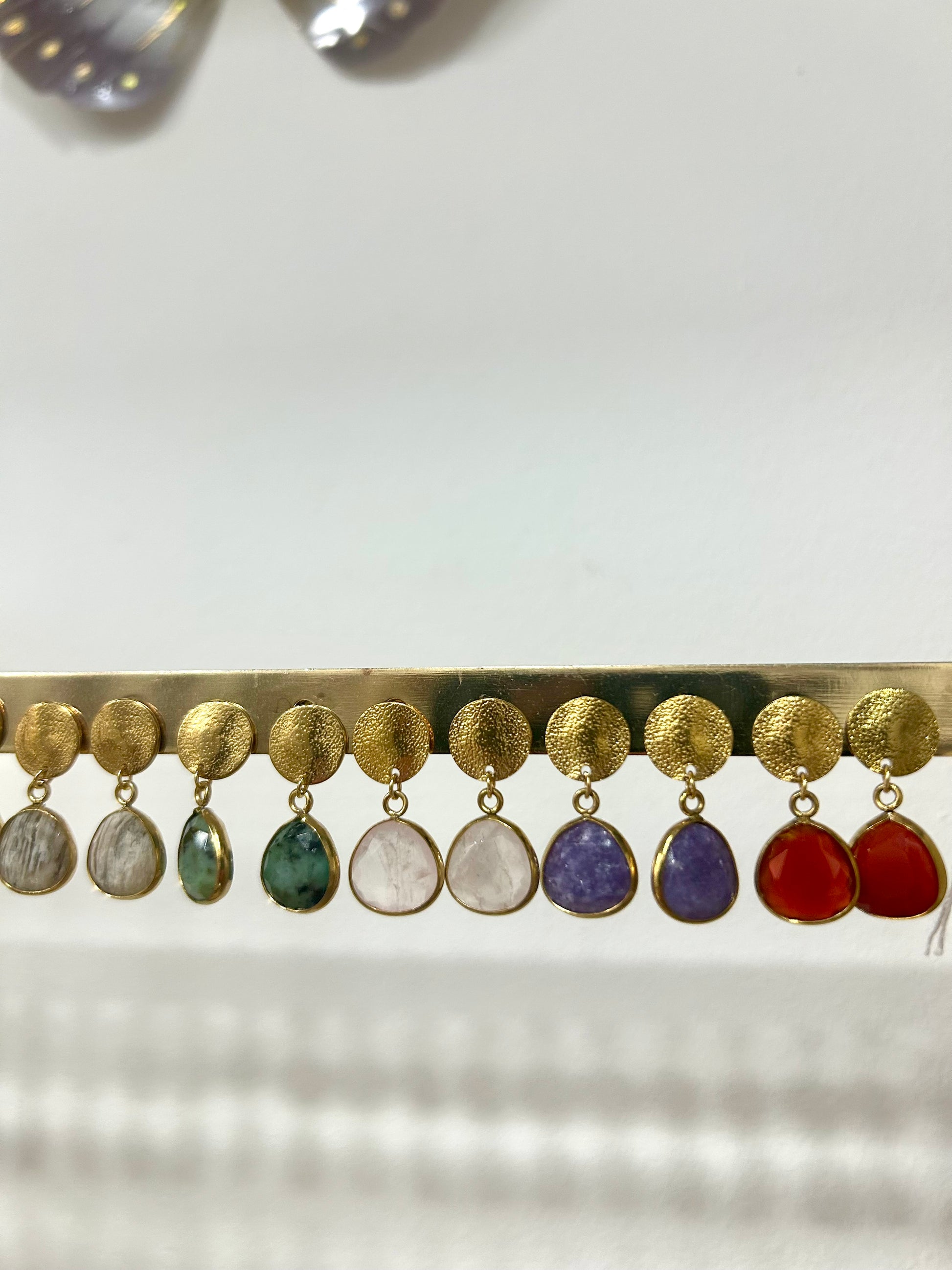Pendientes de acero inoxidable chapado en oro con mineral facetado natural.
